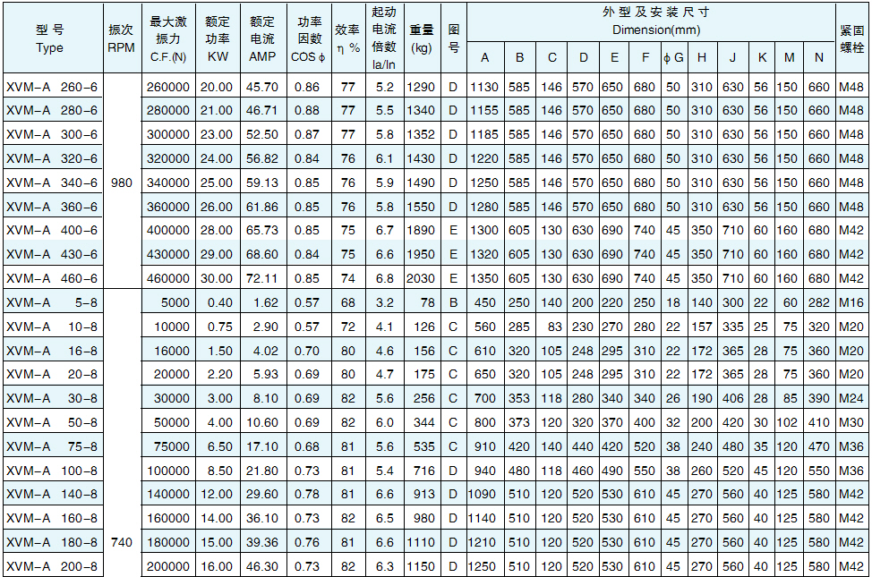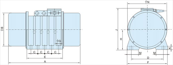 XVM-A振動(dòng)電機(jī)外形及安裝尺寸